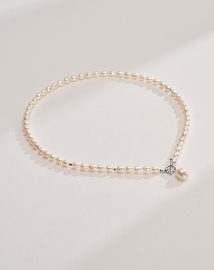 宠爱好礼 望美s925银淡水珍珠项链4 5mm白色米形时尚